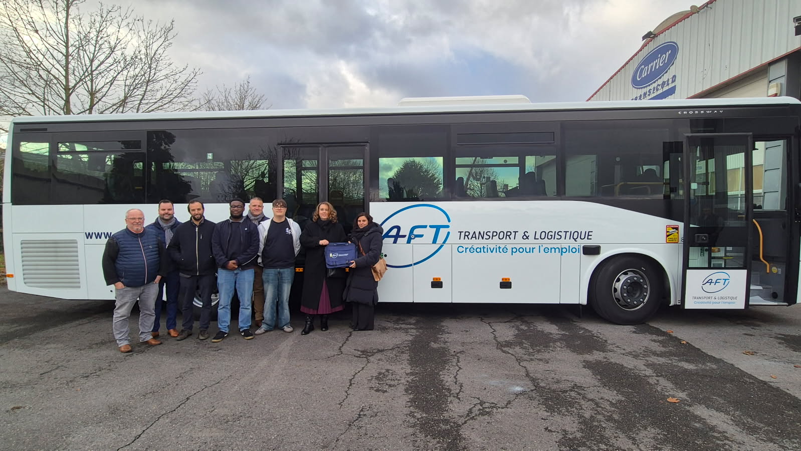 Le lycée professionnel Antoine de Saint-Exupéry d’Halluin (59) a reçu un autocar IVECO BUS Crossway Euro 6 en double commandes, remis officiellement par Valérie DEQUEN, Déléguée Générale de l'AFT et Saou Ghadfa, Délégué régional AFT Hauts-de-France.