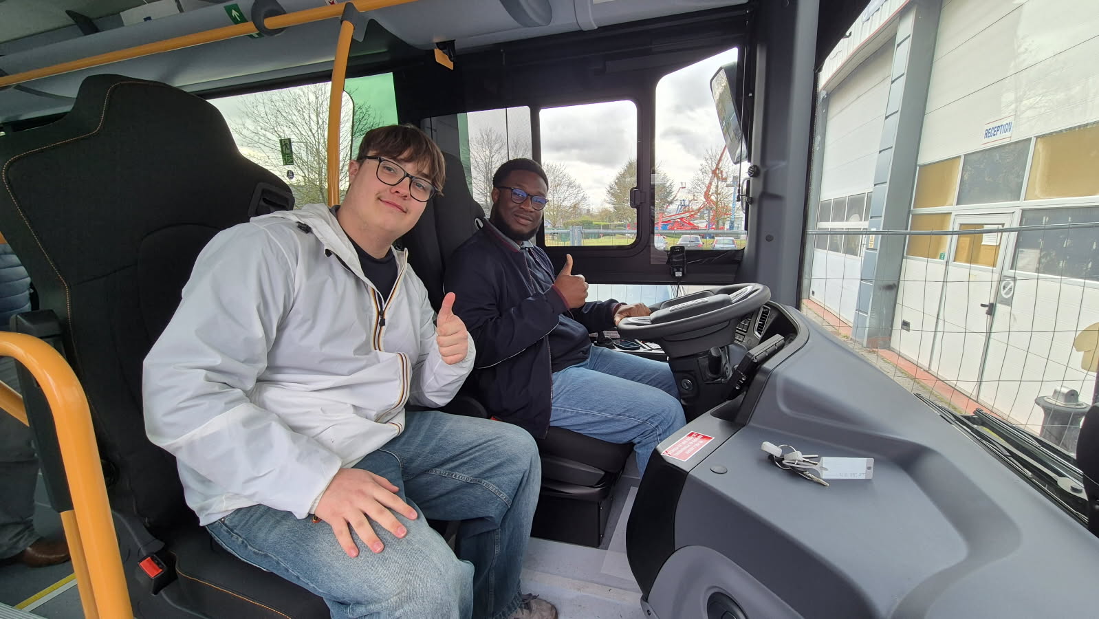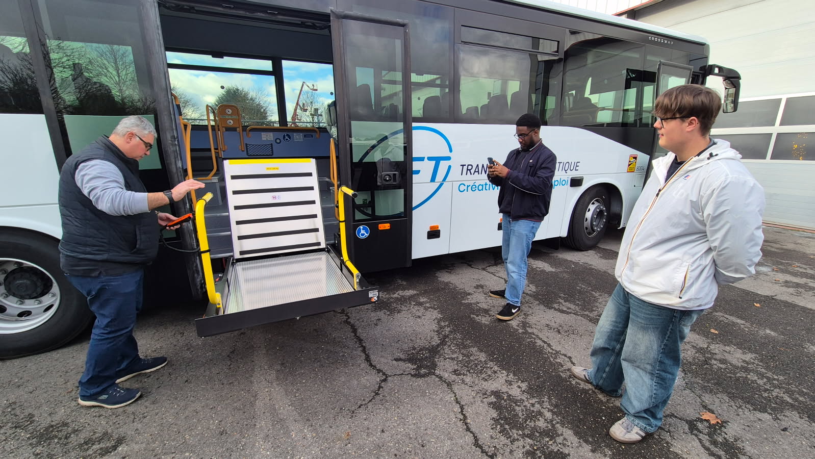 Les clés du véhicule ont été confiées à Ludovic Gombert, professeur de conduite, qui accompagne cette année 10 élèves en CAP C4A (Conducteur Agent d'Accueil en Autobus et Autocar) dans leurs premières heures de conduite.