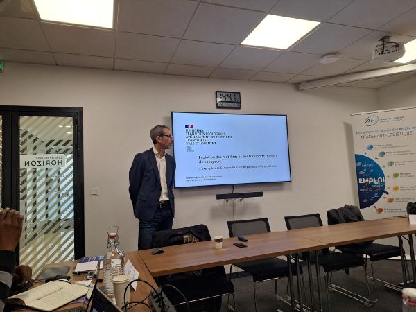 Les enseignants ont pu bénéficier d’un second apport théorique réalisé par Édouard Parant, coordinateur national des SERM au ministère de la transition écologique qui, après avoir établi un panorama des acteurs impliqués dans les politiques de Transport (autorités organisatrices de la mobilité régionales et locales) et le rôle de l’Etat qui porte nationalement la démarche, a pu donner des exemples concrets de mise en place de SERM (Services express régionaux métropolitains) prévus pour améliorer la desserte entre un centre ville et sa zone périurbaine. Les SERM visent à renforcer l’offre ferroviaire et à la compléter par d’autres modes, dont les services de car ou les réseaux cyclables.
