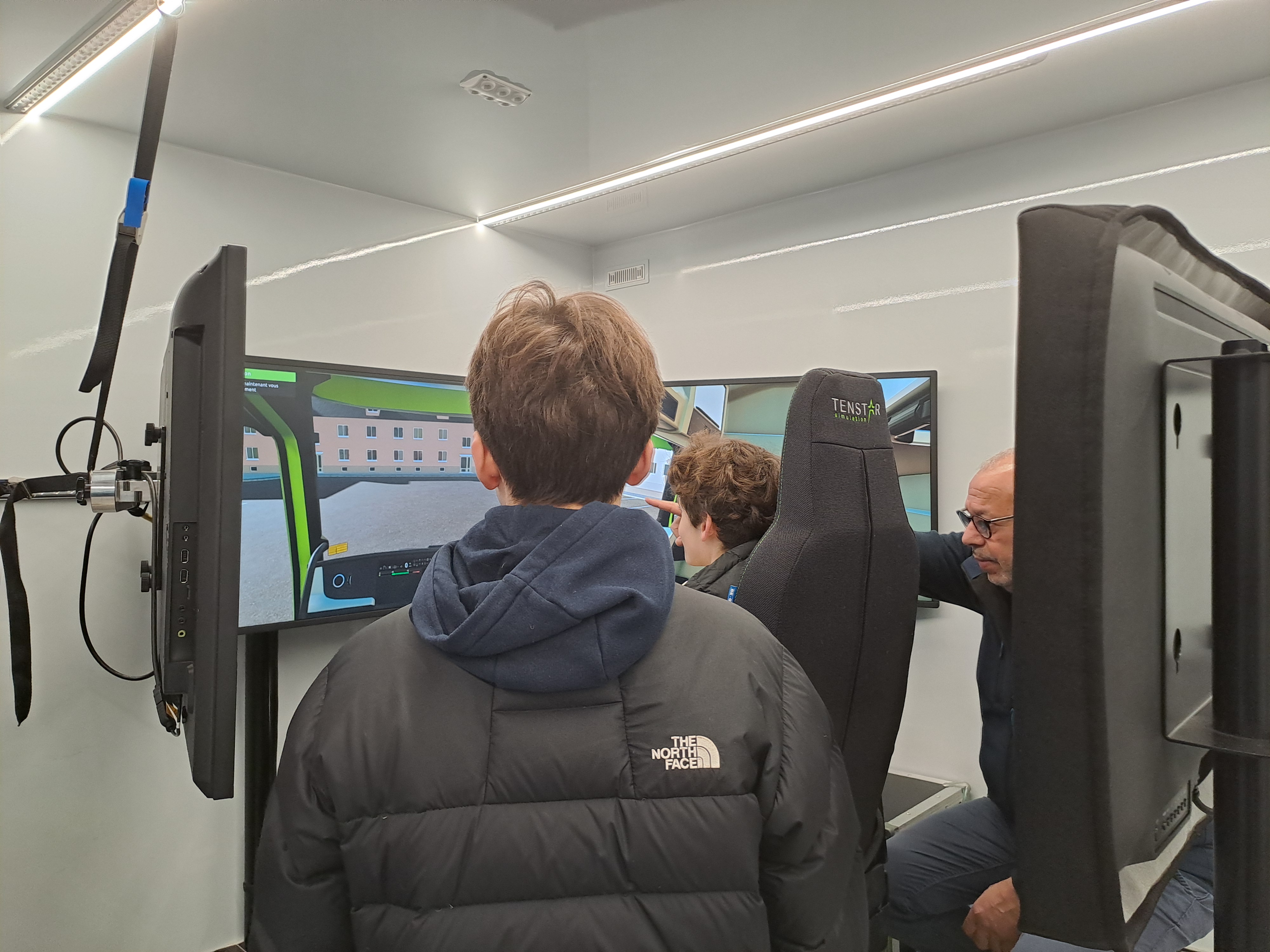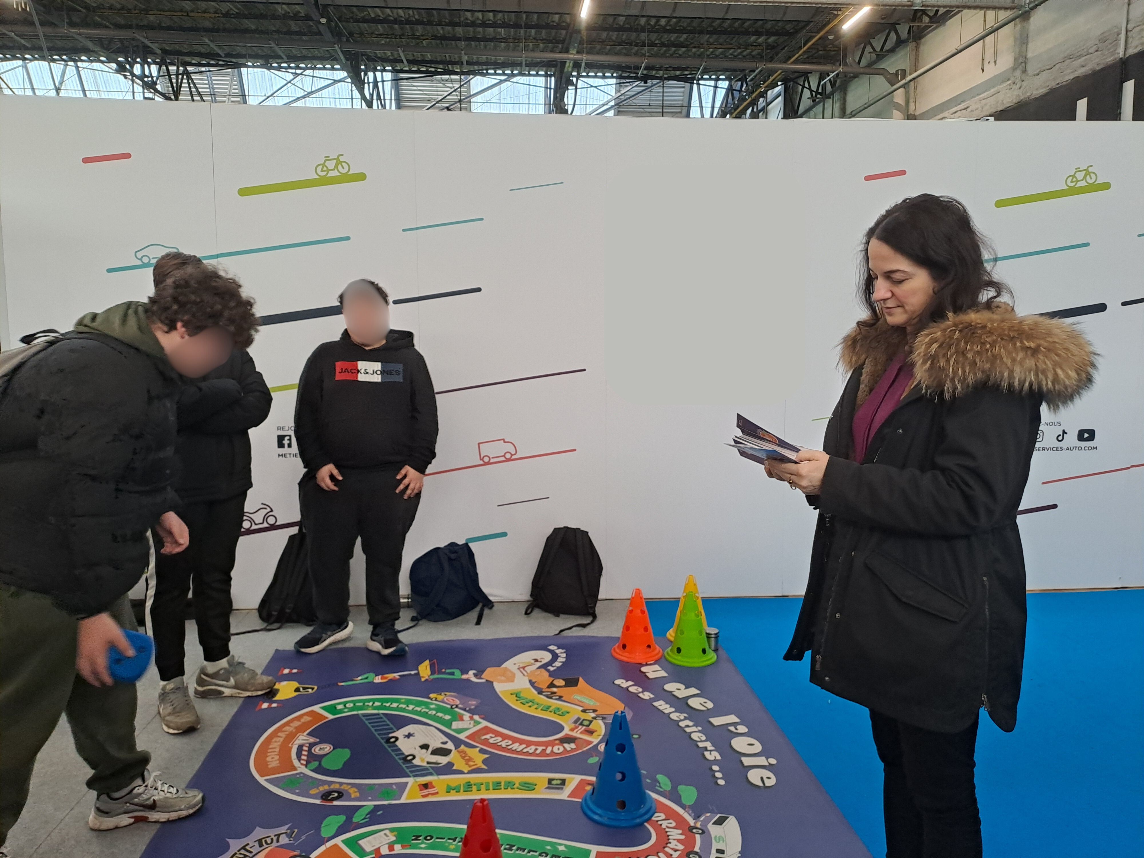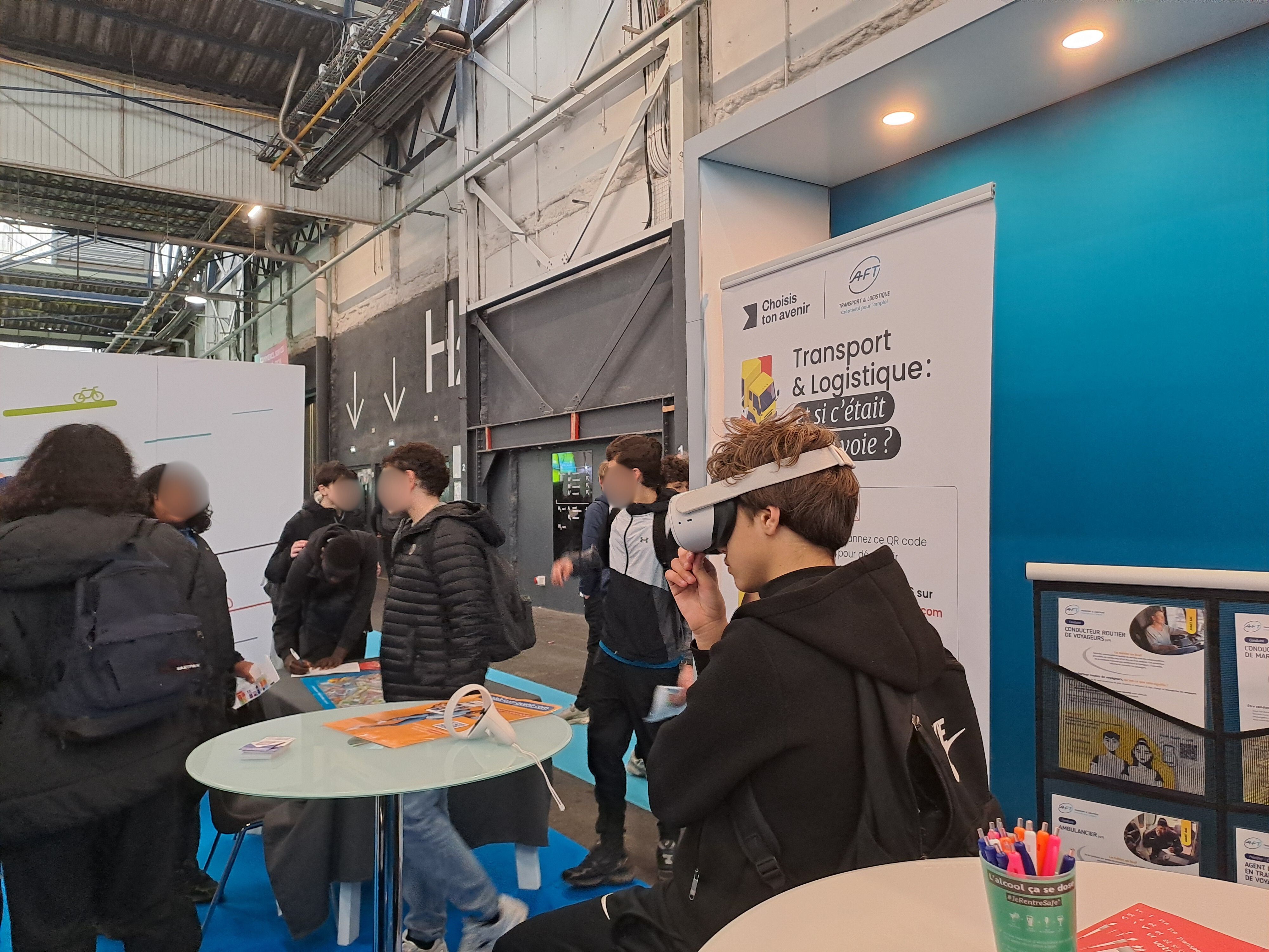 Pour l'occasion, l'AFT Normandie avait un stand de 100 m2 et proposait plusieurs activités : simulateur de conduite, jeu de l'oie géant, casques de réalité virtuelle et découverte des entreprises de la Branche avec la présence de nos Ambassadeurs de l'Emploi : STEF, Groupe Noyon, Transports Le Goff, Transports Roullé et Fils, Transports Blochon Martin et Bariau Leclerc. STEF Vire avait également mis à disposition à l'extérieur une semi-remorque frigorifique. Les formateurs du groupe ont pu montrer aux jeunes à quoi ressemblait la cabine et l'intérieur d'une semi-remorque.