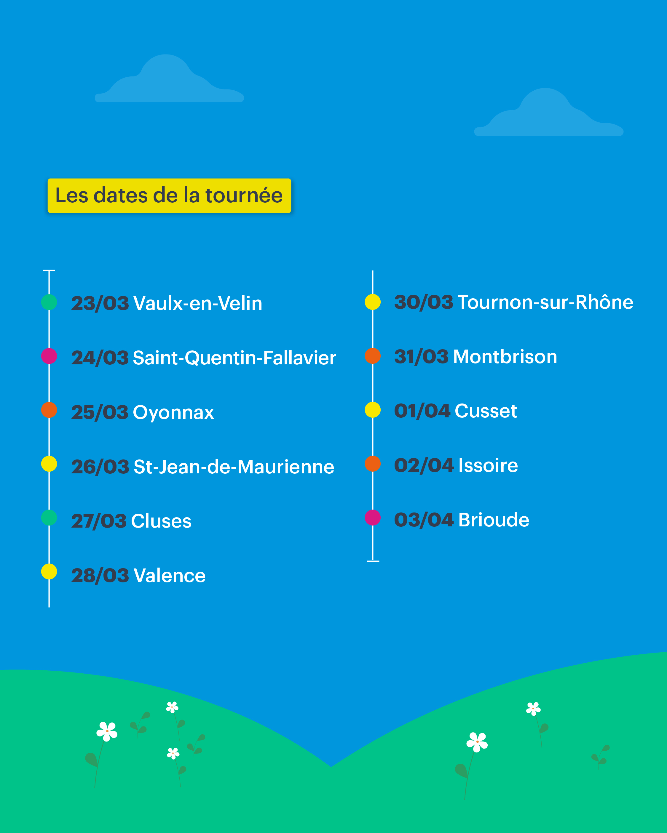 | Saint-Quentin-Fallavier (38) | mardi 24 mars 2026 | Complexe sportif et parking Tharabie | retrouvez le programme en cliquant ici |