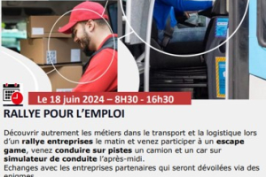 Découvrir autrement les métiers dans le transport et la logistique lors d’un rallye entreprises le matin et venez participer à un escape game, venez conduire sur pistes un camion et un car sur simulateur de conduite l’après-midi.