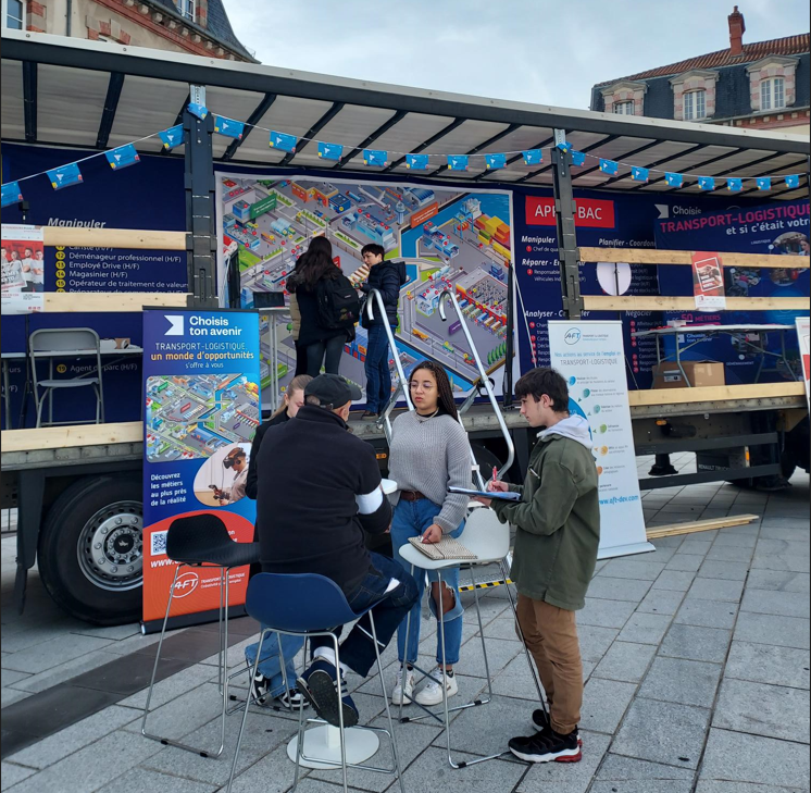 L’AFT Auvergne-Rhône-Alpes s’est installée à bord d’un camion 44 tonnes du groupe BERTO aménagé pour l'occasion. A travers le schéma des métiers, les casques oculus, la valise de réalité virtuelle, c’est plus de 1 700 collégiens, lycéens, étudiants, parents, professionnels en reconversion, demandeurs d’emploi et prescripteurs qui ont été sensibilisés et informés sur les métiers et les filières de formations.