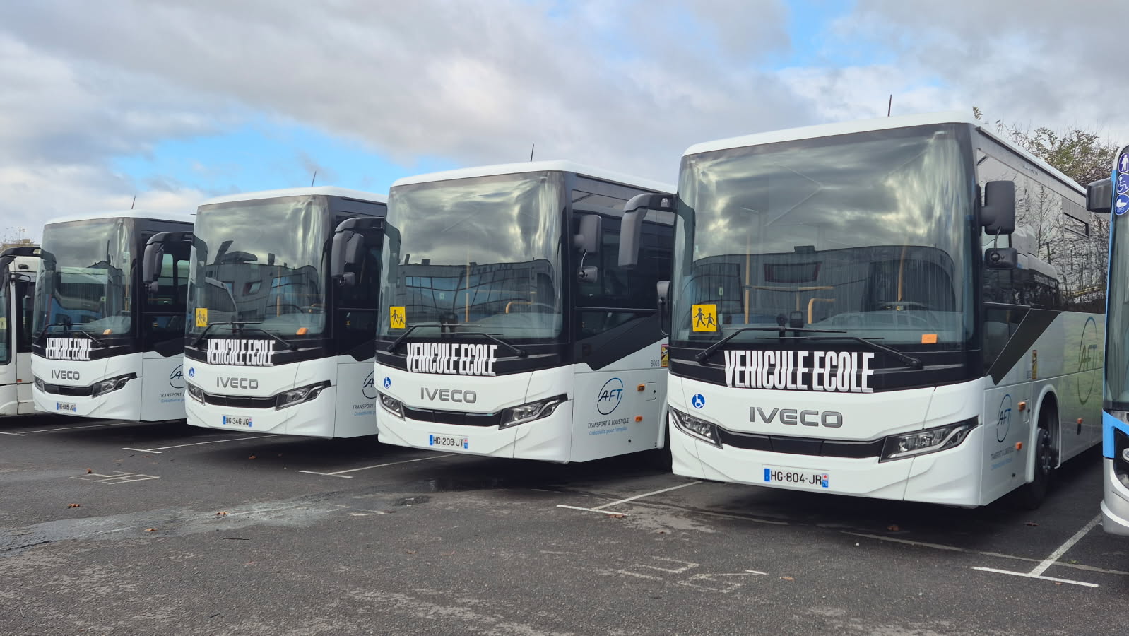 Le lycée professionnel Antoine de Saint-Exupéry d’Halluin (59) a reçu un autocar IVECO BUS Crossway Euro 6 en double commandes, remis officiellement par Valérie DEQUEN, Déléguée Générale de l'AFT et Saou Ghadfa, Délégué régional AFT Hauts-de-France.