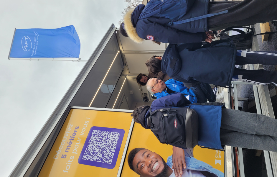 L’AFT Transport & Logistique se dote d’un camion-podium itinérant sous la forme d’un véhicule utilitaire léger qui a pour objectif d’accueillir collégiens, lycéens, étudiants, personnes en recherche d’emploi ou en reconversion lors d’événements nationaux ou régionaux. Le camion-podium intègre un simulateur de conduite qui propose quatre scénarii :