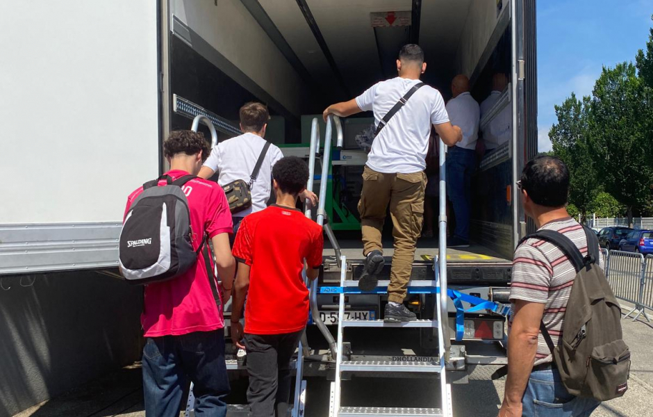 Merci également au lycée Louis Armand et ses élèves conducteurs routiers qui ont remonté la remorque frigorifique de Marseille et ont su l'installer à Lyon malgré les difficultés pour manoeuvrer.