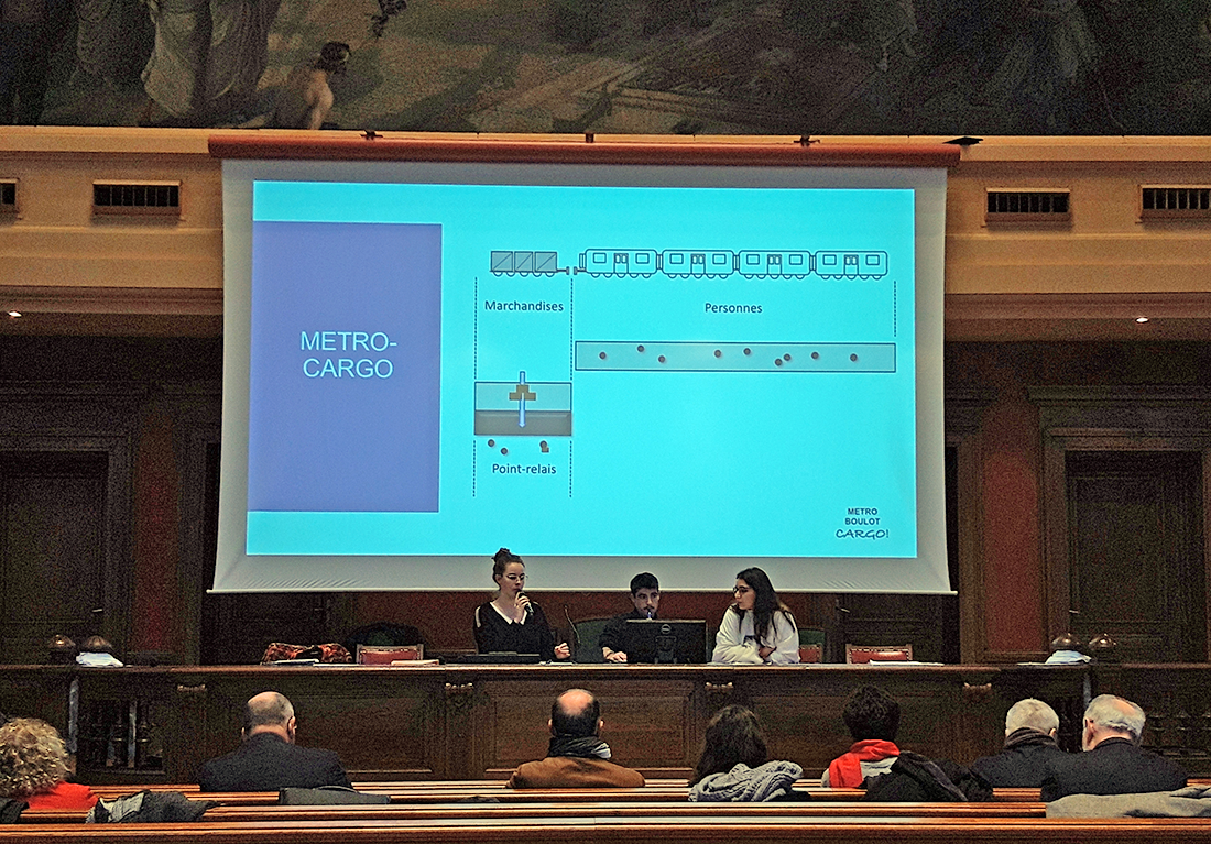 A l'issue de cette journée, toutes les propositions furent présentées : Tramfret, casiers dans des navettes, metro-cargo, transformation des parkings en hub, développement du transport fluvial… Les réflexions des étudiants ont été très diverses tant dans la forme que sur le fond !