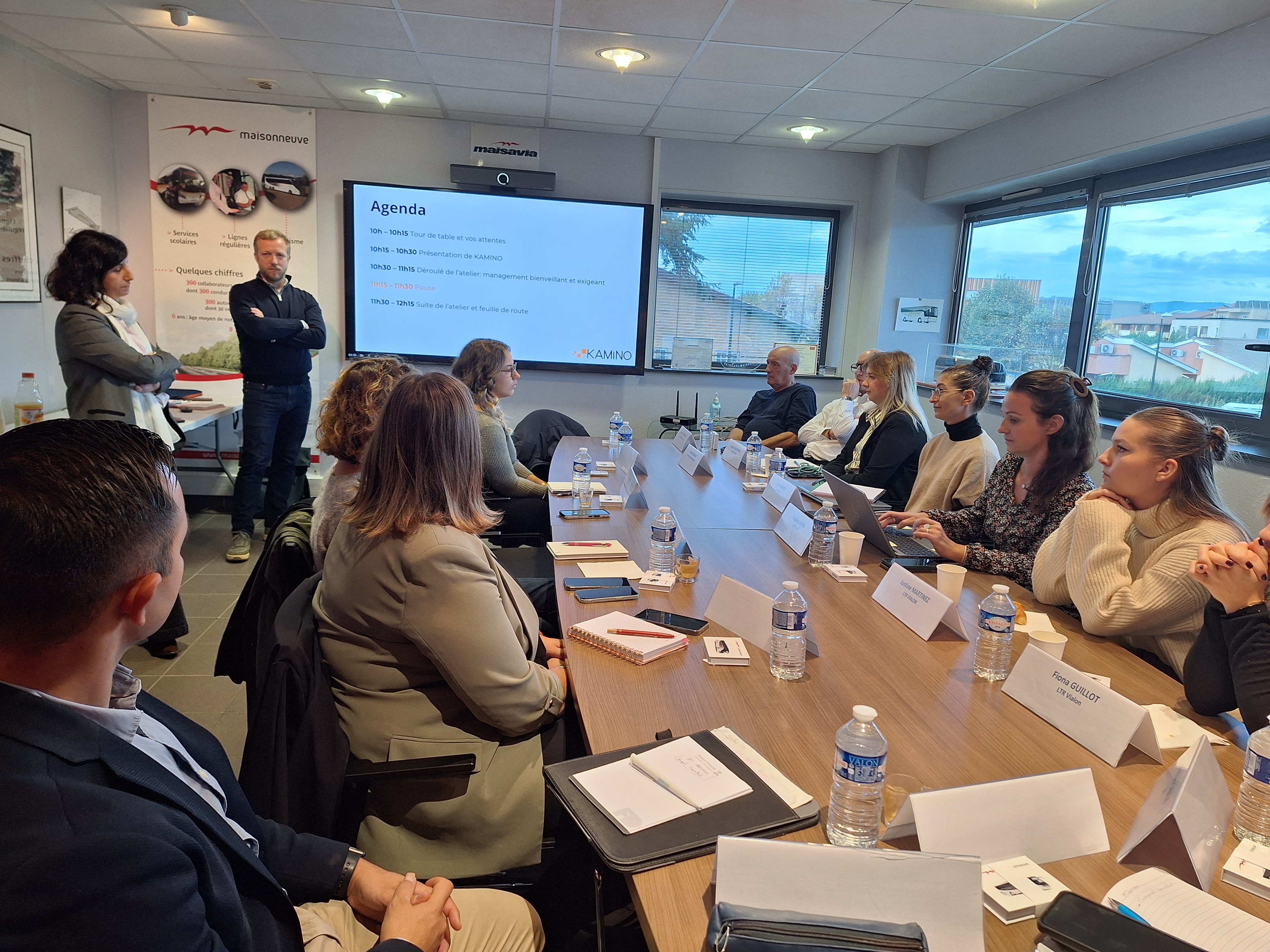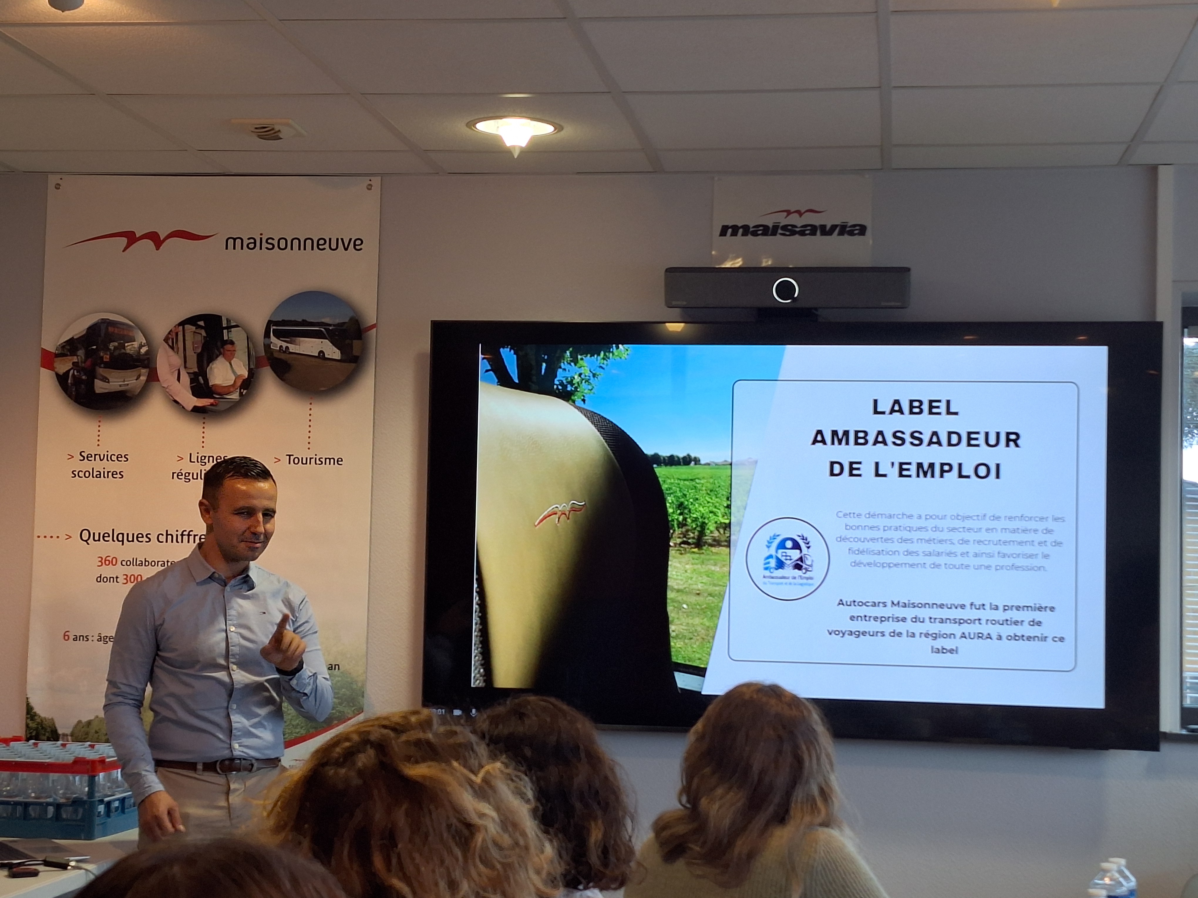 - L'après-midi a été consacrée à la présentation de l'entreprise hôte de cette 3ème AFT'Heures, par Arnaud CHAGNY, Responsable des Ressources Humaines chez les Autocars Maisonneuve. Après avoir présenté les valeurs, le fonctionnement et les actualités de l'entreprise, il a guidé les participants à la découverte du site, au travers des différents univers (agence de voyage, exploitation, parc de véhicules, atelier mécanique, salle des conducteurs). Cette visite a été jalonnée par la rencontre de différents collaborateurs qui se sont volontiers prêtés au jeu des questions/réponses sur leur quotidien.