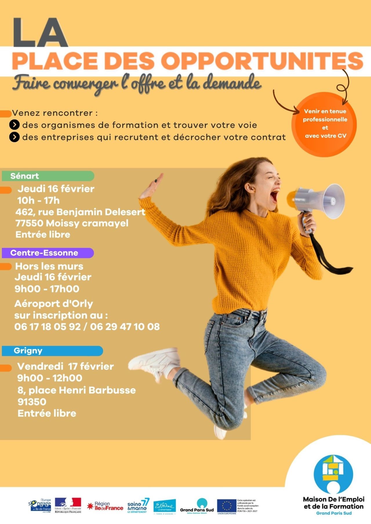 La Délégation AFT Ile-de-France sera présente à l'événement emploi mensuel de la MDEF "La Place des Opportunités" le vendredi 17 février 2023 à la Maison de l'Emploi et de la Formation Grand Paris Sud.