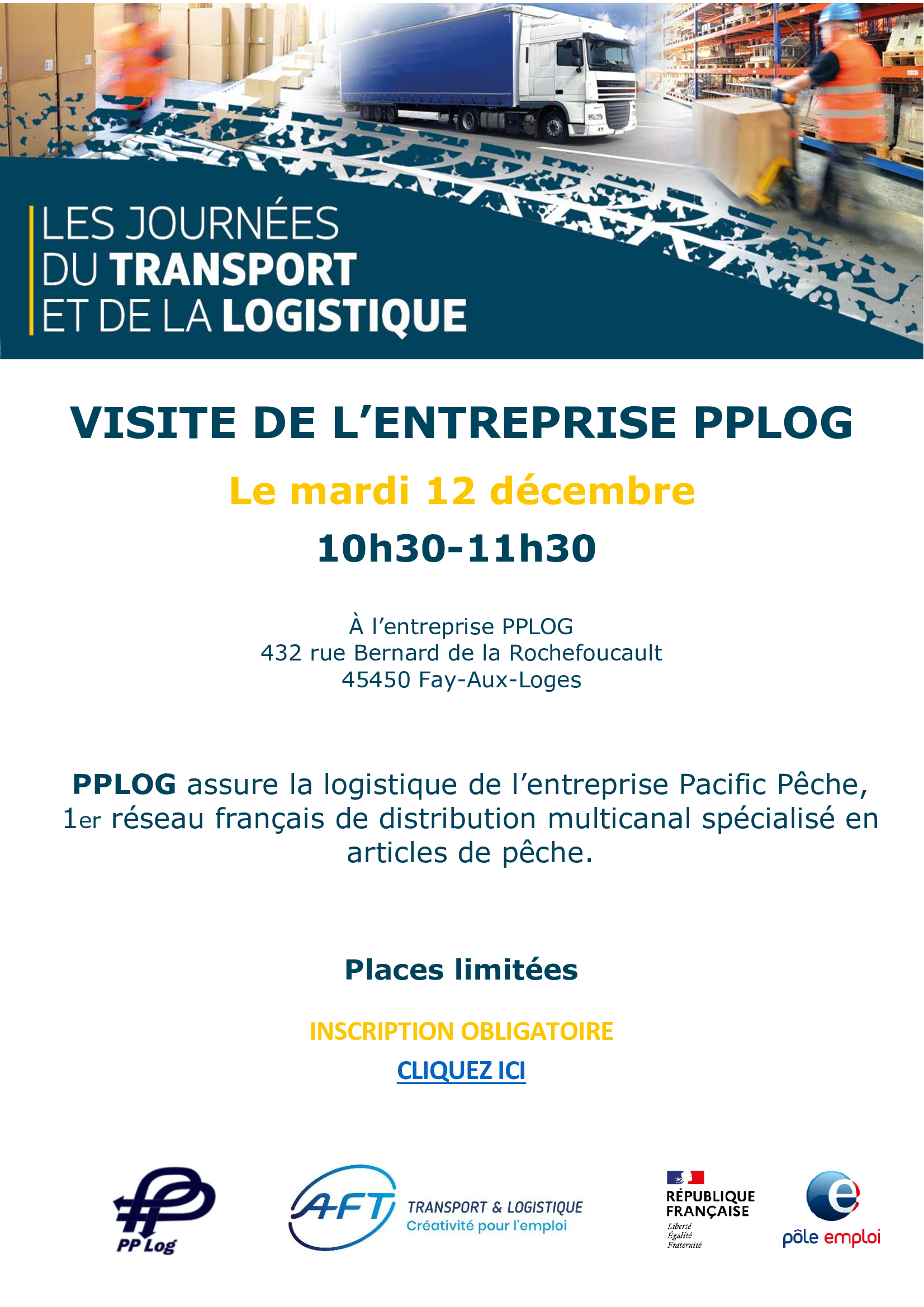 L'AFT et Pôle Emploi s'associent pour vous proposer de découvrir les métiers et de visiter une entreprise de logistique à Fay aux Loges !